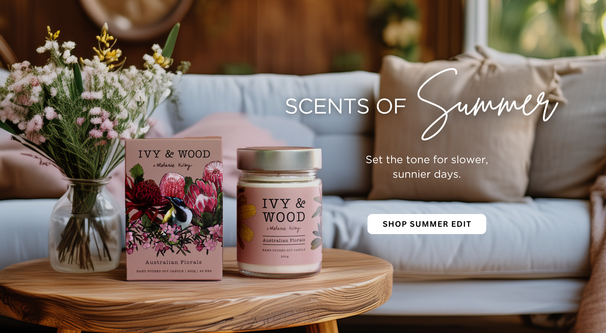 In collaboration with Melanie Kilby, we've captured the essence of the Australian landscape with uniquely blended fragrances inspired by native botanicals, bushland, and coastal escapes.